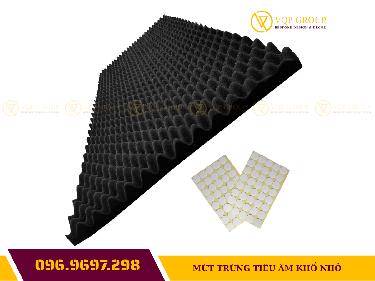 Mút trứng tiêu âm khổ nhỏ là vật liệu tiêu âm được sản xuất từ xốp PE Foam hoặc PU Foam, có bề mặt dạng hình trứng giúp hấp thụ và phân tán sóng âm hiệu quả.