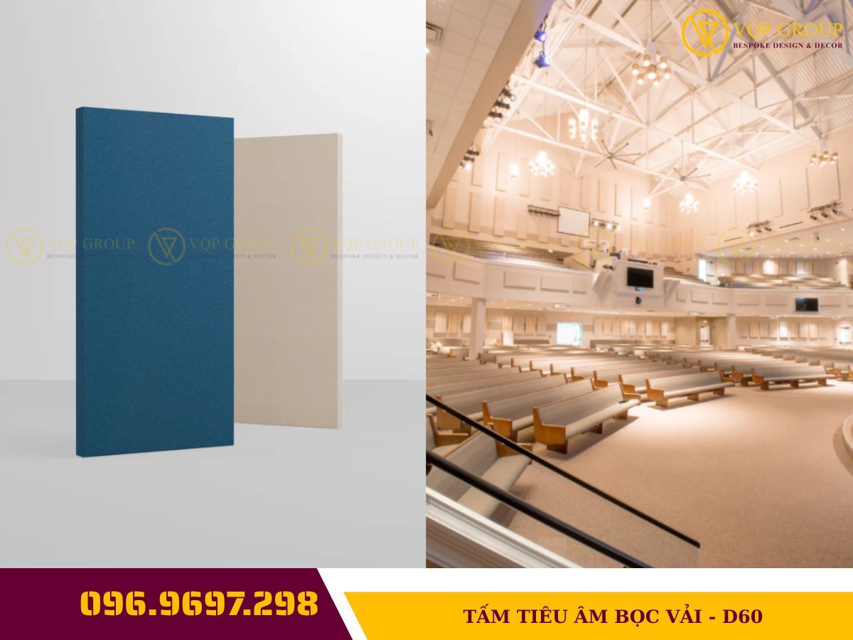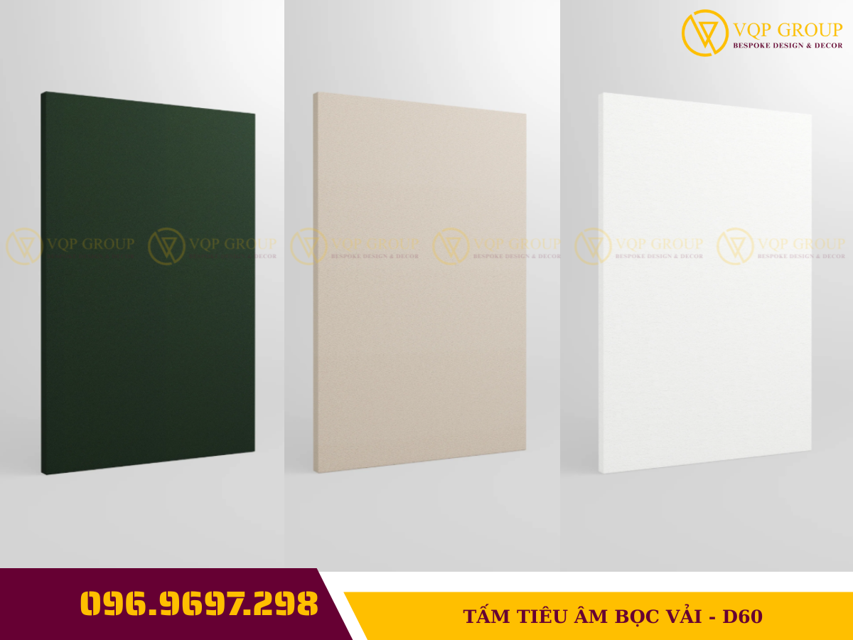 Tấm tiêu âm bọc vải D60 là dòng tấm tiêu âm đa năng với độ dày 6cm, được thiết kế để kiểm soát giọng nói, âm nhạc và tiếng ồn môi trường trong nhiều loại không gian khác nhau.